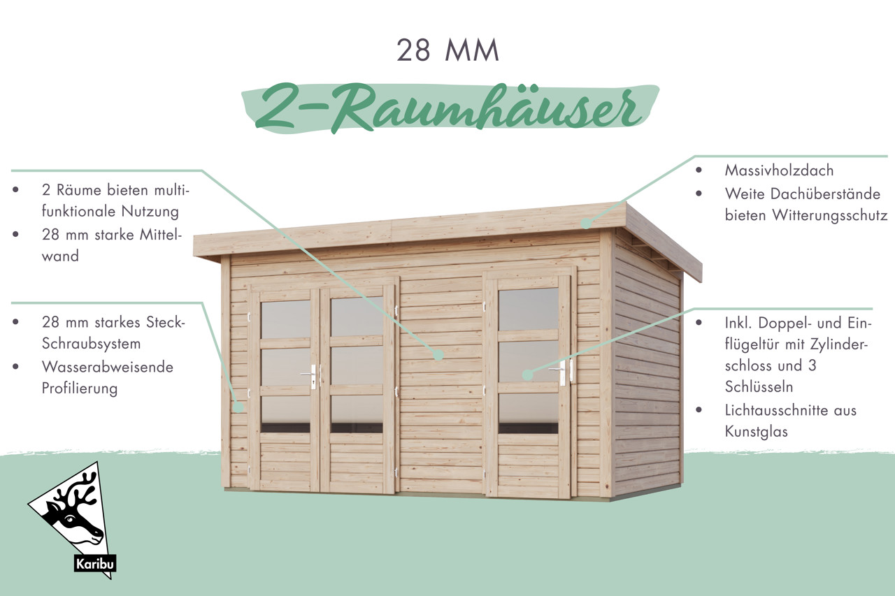 Karibu Pultdach Gartenhaus Radeburg 5 mit Terrasse und Fussboden