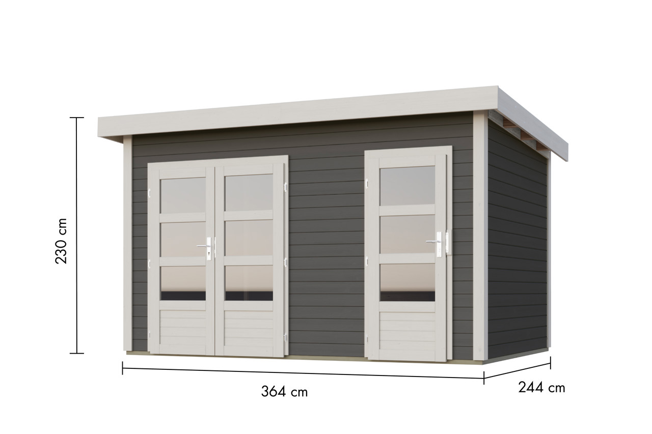 Karibu Pultdach Gartenhaus Radeburg 5 mit Terrasse und Fussboden