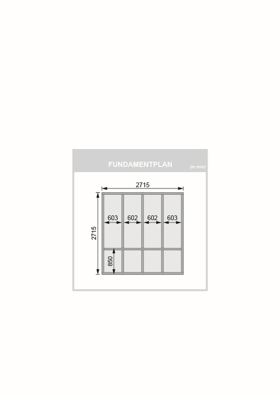 Sockelmaß: 276 x 276 cm, Dachstand: 276 x 276 cm