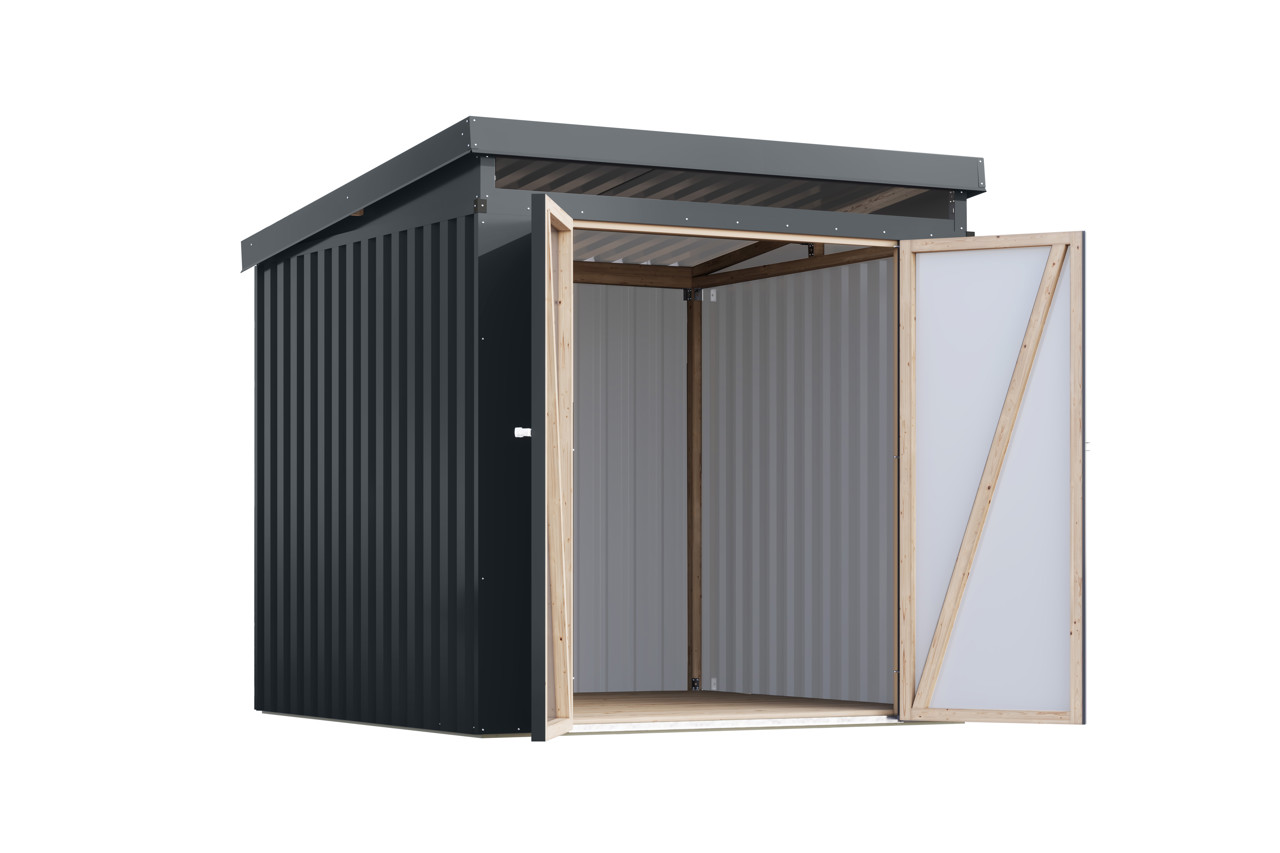 Das Metall Gerätehaus Iridium bietet eine langlebige und praktische Aufbewahrungslösung für Ihren Garten und überzeugt durch Stabilität, modernes Design und eine komfortable Nutzung.