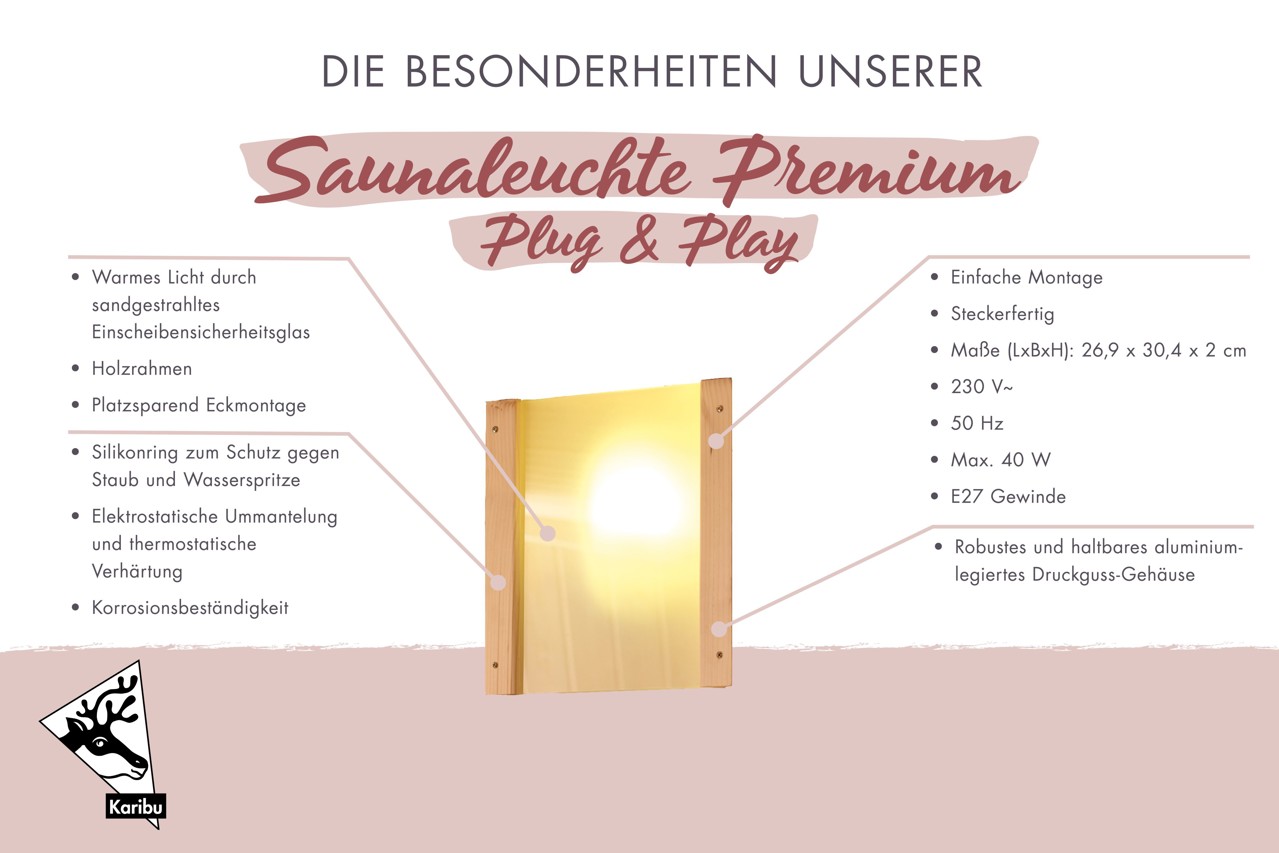 Plug & Play Saunaleuchte Premium für 230 Volt betriebene Saunen (inkl. Kabel)
